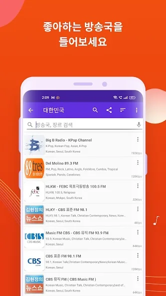 KBS 쿨FM, Blue FM, SBS 파워FM, KBS 제2라디오, MBC FM4U, KBS 제1라디오, 서울 CBS FM, 국악방송, MBC 표준FM, Mukulcast, 영동극동방송FM, YTN 라디오, 교통방송 외 많은 라디오 방송을 청취하십시오!