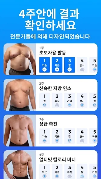 이 앱은 초보자부터 운동 경험이 있는 분까지 모두 이용하기 쉽도록 설계됐어요. 하루 몇 분만 투자하면 4주 만에 눈에 띄는 변화가 찾아온다는 점이 정말 매력적이죠. 특히, 지방 태우기 운동에 집중해서 복부와 가슴, 팔, 다리까지 골고루 운동할 수 있어요.