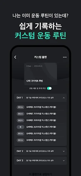 이 앱은 집이든 헬스장이든 어디서든 나에게 딱 맞는 운동 계획을 만들어줍니다. 체성분 분석이나 목표에 따라 맞춤형 루틴을 추천받을 수 있어, 매번 새로운 운동을 시도하는 재미도 있답니다.