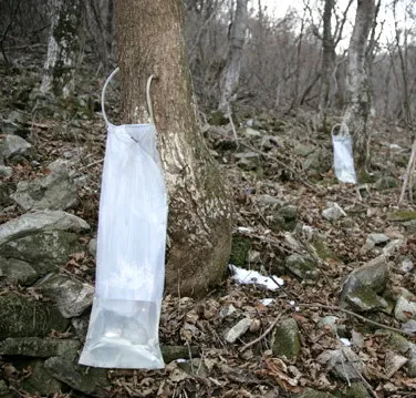 나무 한 그루에 대한 채취 규정은 나무의 가슴 높이 지름을 기준으로 정해지며, 10~19cm는 구멍 1개, 20~29cm는 2개, 30cm 이상은 3개까지 뚫을 수 있다고 합니다. 나무의 보호를 위해 휴식년을 두어 최대 3년 동안은 채취를 제한하는 것도 규정에 포함되어 있습니다. 이러한 엄격한 규정은 지속가능한 자원 활용과 나무의 보호를 목적으로 하고 있습니다.