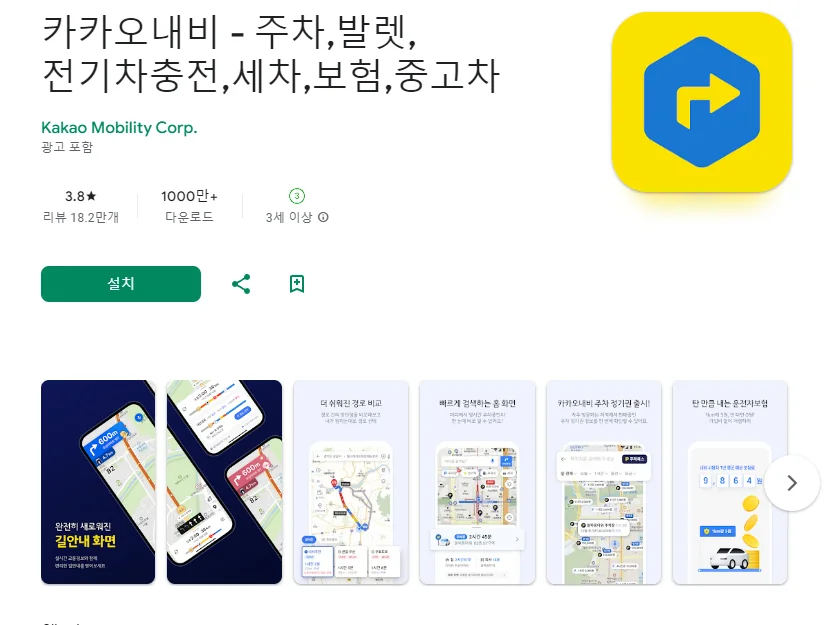 이 어플은 구글플레이스토어에서 "네비게이션"로 검색했을때 1번째로 나오는 어플입니다. 아래는 카카오내비 - 주차,발렛,전기차충전,세차,보험,중고차 어플에 대한 자세한 설명이니 참고하세요.