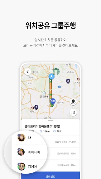 - 일행들과 실시간 위치와 목적지까지 남은 거리를 지도에서 편하게 공유하세요!