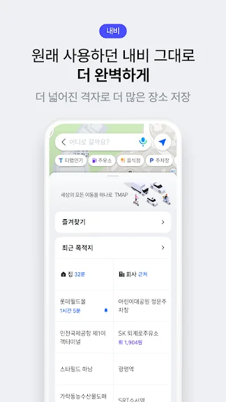 - 첫 화면에서 집까지 소요시간, 날씨, 인기장소, 최저가 주유소까지 맞춤정보를 한 눈에 확인하세요!