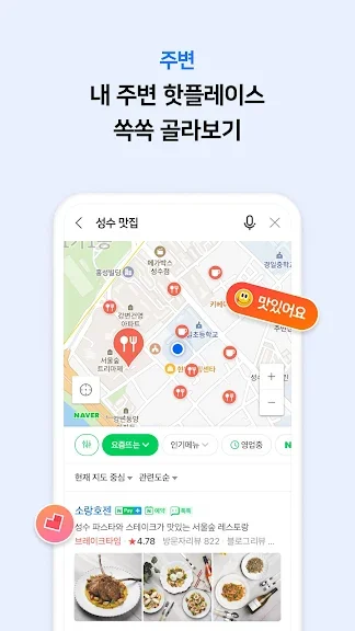 네이버 사용자 데이터를 기반으로 제공하는 내 주변의 맛집, 가볼만한 곳 정보를 확인 할 수 있어요.