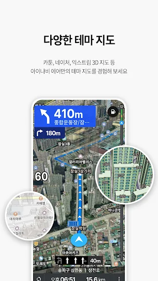 - 안드로이드 오토에서 실사 항공 3D 지도로 즐거운 드라이빙을 경험해보세요!