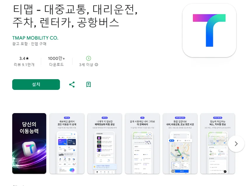 1) 티맵 - 대중교통, 대리운전, 주차, 렌터카, 공항버스 어플 소개