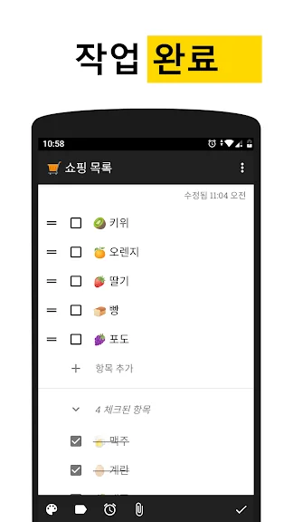 ✔️ 완료된 작업은 체크리스트의 하단으로 자동 이동합니다.