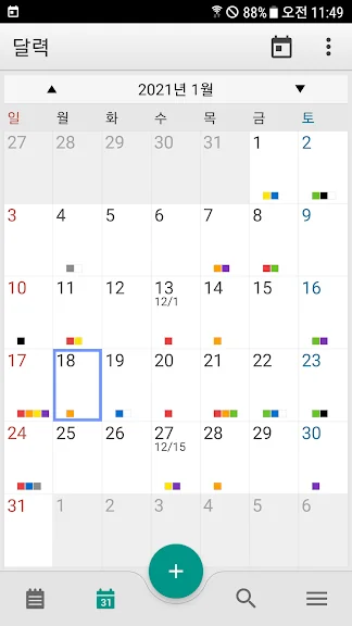 - 강력한 알림 기능 : 시간 알람, 종일 알림, 반복 설정.(음력 지원)