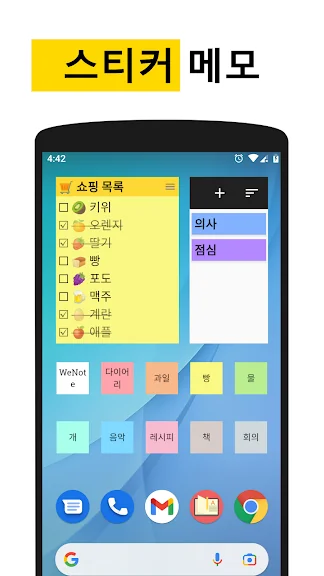 🗒️ 홈 화면에 다양한 스티키 노트 위젯 5개를 표시하세요.