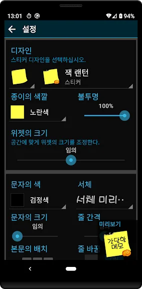 - 바탕화면 위젯 기능 (홈스크린 포스트잇)