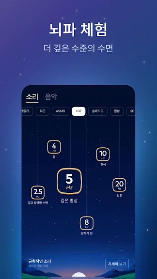 - 끝없는 사운드와 음악이 있습니다. 인하우스 소닉 그루스로 디자인된 안정된 소리와 음악으로 편안한 잠자리에 들어보세요.
