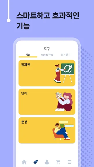 개인별 공부법. 외국어 공부는 사람마다 배우는 방식, 속도가 다릅니다. 그래서 저희는 앱은 학습자의 학습 유형을 학습하도록 설계되었습니다. 회원님의 앱 사용 시간이 조금만 쌓여도 회원님에게 가장 적합한 방법이 무엇인지 이해하고 회원님만을 위한 특화된 선생님이자 가이드가 될 것입니다.