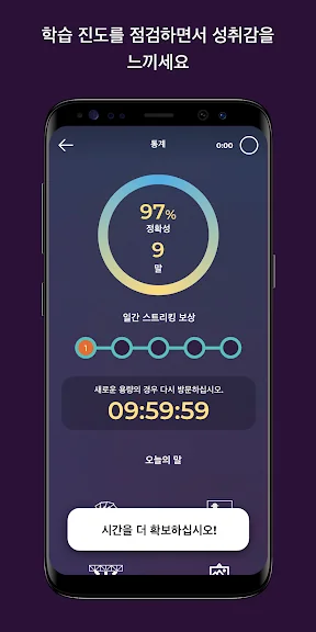 고급 통계자료. 이 앱의 스마트 리포트 시스템으로 회원님의 진도를 언제나 확인하실 수 있습니다. 회원님의 어휘력을 매일 차근차근히 한 단계씩 높이세요.
