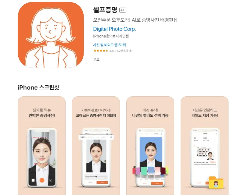 1) 아이폰 증명사진 애플리케이션 어플 소개