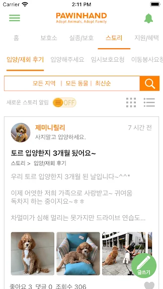 2) 포인핸드 -유기동물 입양&실종동물 찾기(유기견,유기묘) 어플 스크린샷