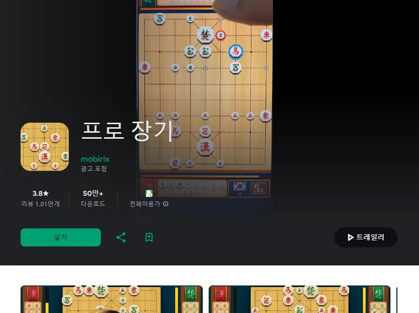 이 어플은 구글플레이스토어에서 "장기 바둑"로 검색했을때 3번째로 나오는 어플입니다. 아래는 프로 장기 어플에 대한 자세한 설명이니 참고하세요.