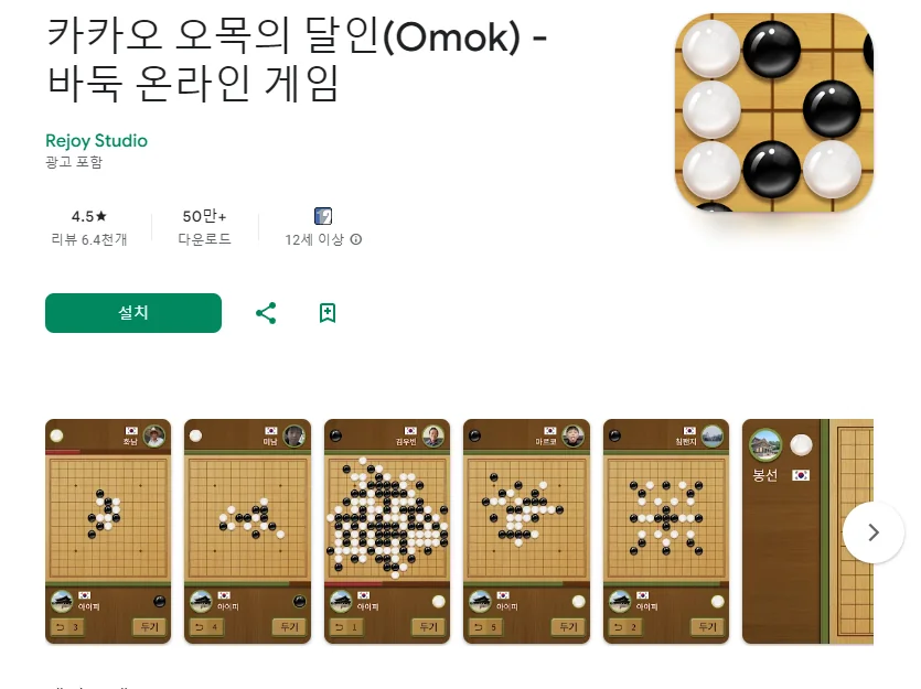 아래는 카카오 오목의 달인(Omok) - 바둑 온라인 게임 어플에 대한 스크린샷 정보입니다.