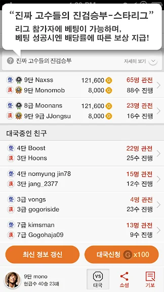 - 바로대국, 자동대국등의 기능은 당신과 최적의 상대를 찾아 최단 시간에 대국이 시작 됩니다.