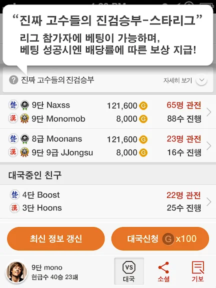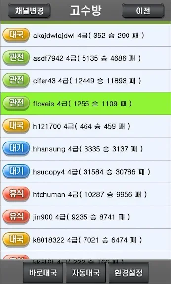 - 바로대국, 자동대국등의 기능은 당신과 최적의 상대를 찾아 최단 시간에 대국이 시작 됩니다.