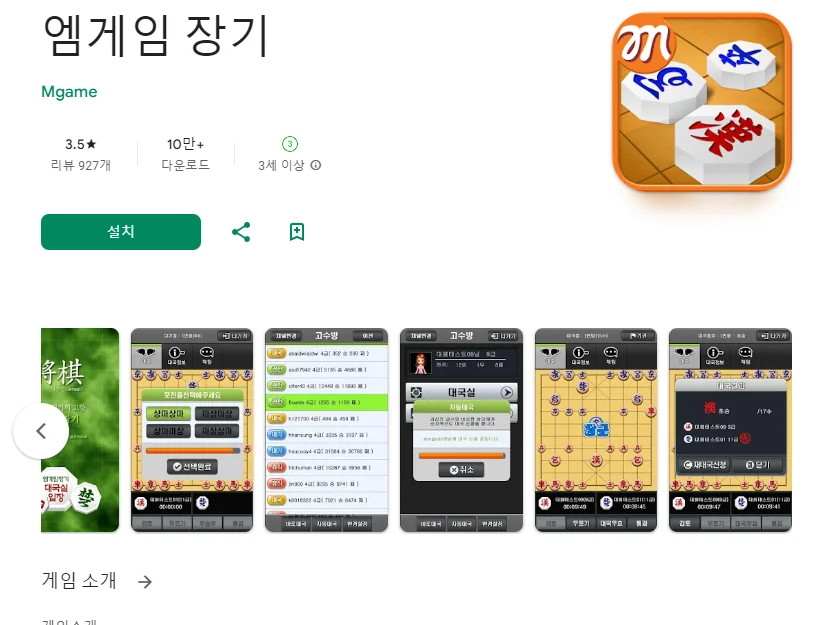 아래는 엠게임 장기 어플에 대한 스크린샷 정보입니다.