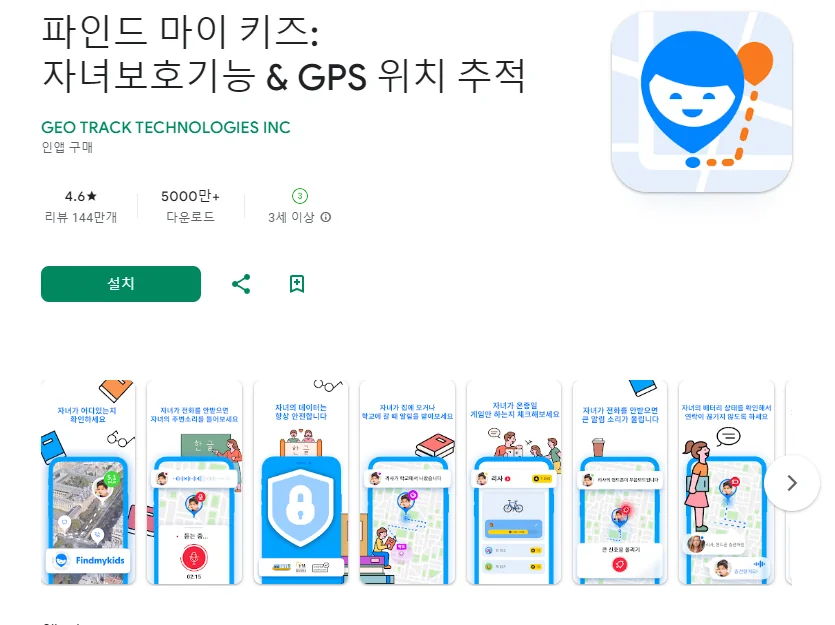 이 어플은 구글플레이스토어에서 "위치 추적기"로 검색했을때 4번째로 나오는 어플입니다. 아래는 파인드 마이 키즈: 자녀보호기능 & GPS 위치 추적 어플에 대한 자세한 설명이니 참고하세요.