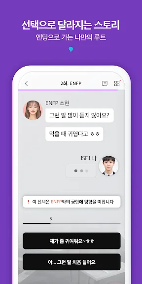 직접 대답을 입력하고 상대방의 반응과 스토리의 결과를 확인하세요