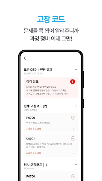 • 설명과 검색을 통해 고장코드에 대한 자세한 내용을 확인하세요.