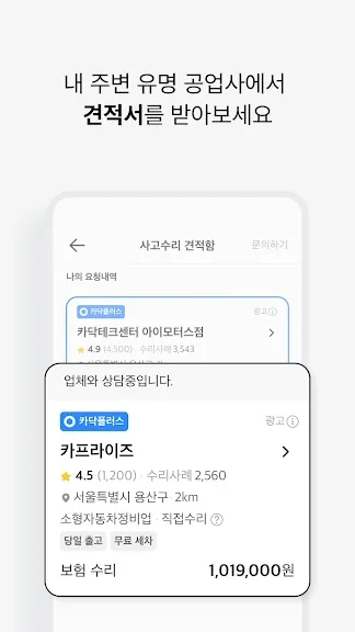 2) 카닥 - 수리비 조회, 타이어, 엔진오일, 보험 어플 스크린샷