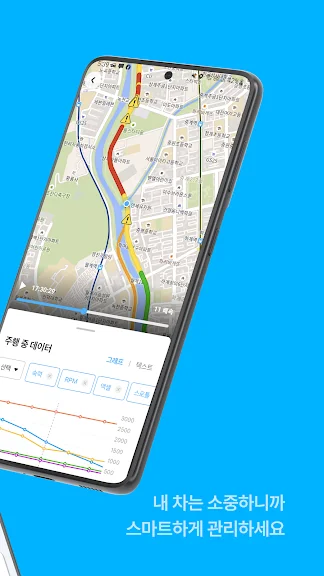 • 주행 다시보기를 통해 속력, RPM, 엑셀 등 주행기록을 시간/위치별로 확인하세요.
