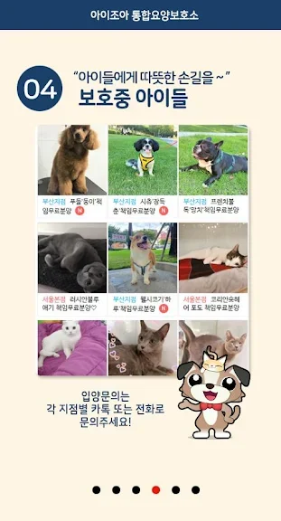 아래는 아이조아요양보호소-강아지파양 보호소, 고양이 유기견입양 어플에 대한 스크린샷 정보입니다.