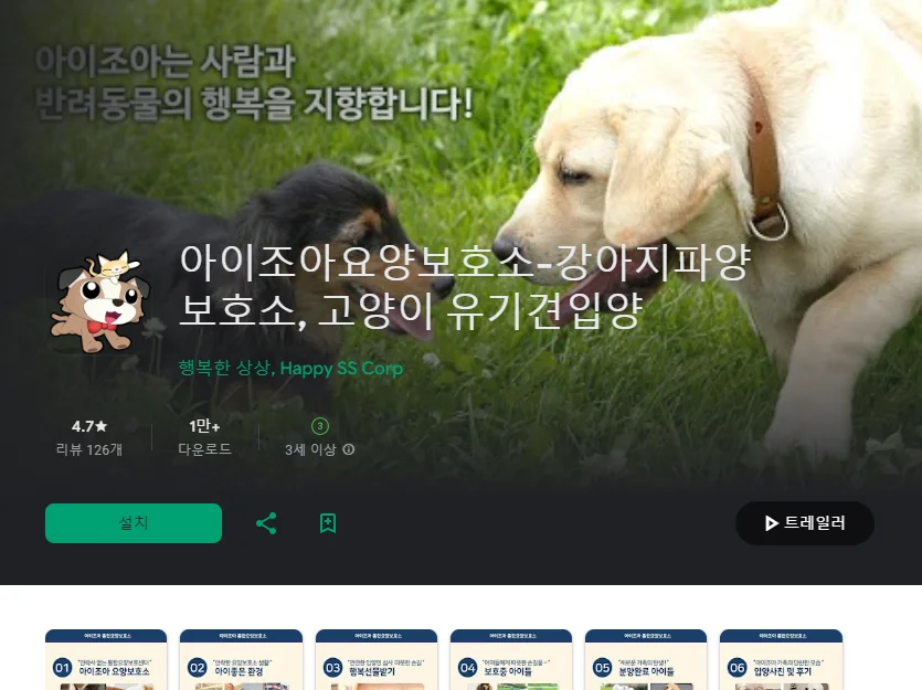 아이조아요양보호소강아지파양보호소고양이유기견입양 앱 다운