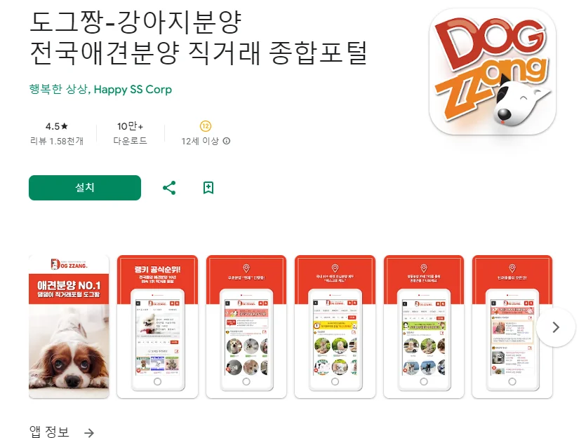 이 어플은 구글플레이스토어에서 "강아지 무료 분양"로 검색했을때 1번째로 나오는 어플입니다. 아래는 도그짱-강아지분양 전국애견분양 직거래 종합포털 어플에 대한 자세한 설명이니 참고하세요.