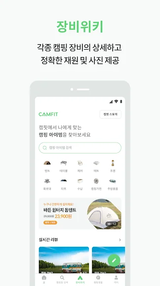 - 캠퍼들과 캠핑 노하우를 공유할 수 있는 캠핏만의 커뮤니티를 경험해보세요