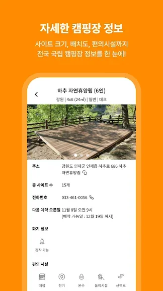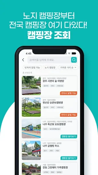- 2,500개 전국 캠핑장 정보제공