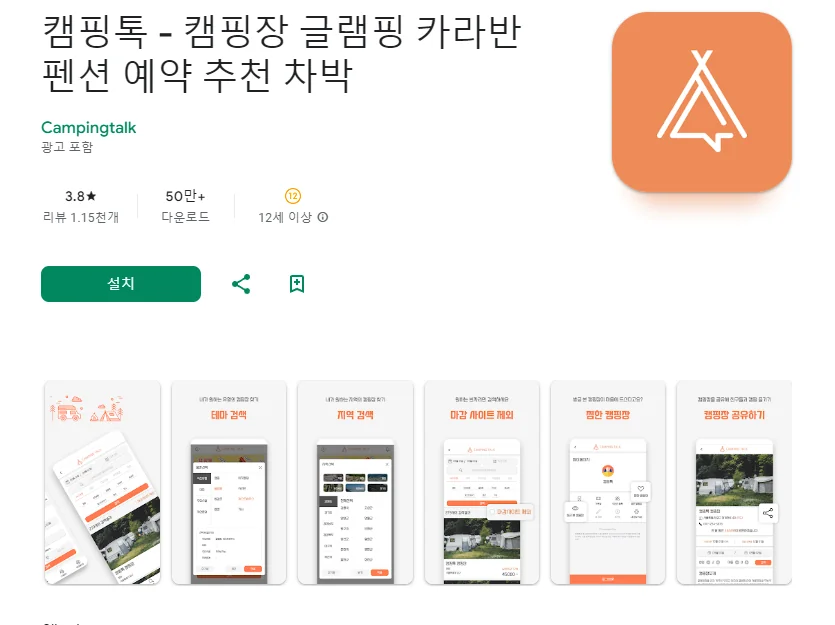 이 어플은 구글플레이스토어에서 "캠핑 예약"로 검색했을때 3번째로 나오는 어플입니다. 아래는 캠핑톡 - 캠핑장 글램핑 카라반 펜션 예약 추천 차박 어플에 대한 자세한 설명이니 참고하세요.