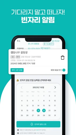 캠핑장에 빈자리가 생기면 바로 알려드립니다!