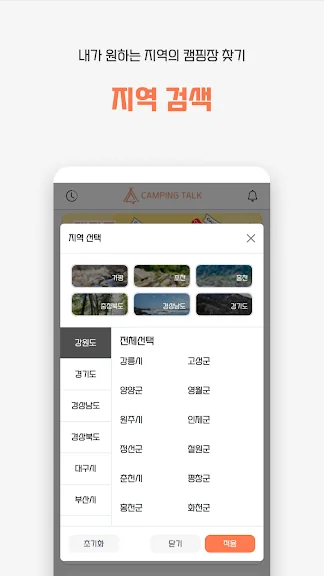 아래는 캠핑톡 - 캠핑장 글램핑 카라반 펜션 예약 추천 차박 어플에 대한 스크린샷 정보입니다.