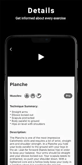 Thenics는 기술 및 진행 상황에 대한 설명과 기술 설명으로 당신을 안내할 것입니다. 모든 기술은 다른 운동을 포함하는 여러 진행으로 나뉩니다. 이를 통해 현재 수준에 맞는 기술을 단계별로 배울 수 있습니다.