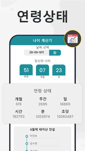 - 세련된 인사말: 연대순 계산기를 사용하여 생일 인사말이나 특별한 메시지에 창의력을 더해보세요 & 나이 계산기 위젯