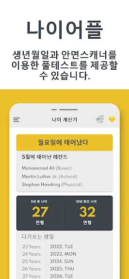 아래는 나이 계산기: 생일 앱 어플에 대한 스크린샷 정보입니다.