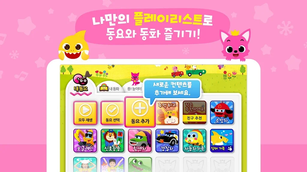전국 유치원에서 선택한 유아 교육 앱, '핑크퐁 아기상어 인기 동요'로 핑크퐁 아기상어 동요를 모두 만나보세요!