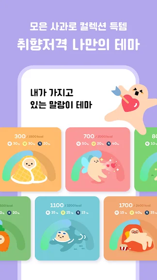 - 모은 사과로 스토어에서 다양한 아이템을 구매해 나만의 취향저격 화면을 꾸며보세요