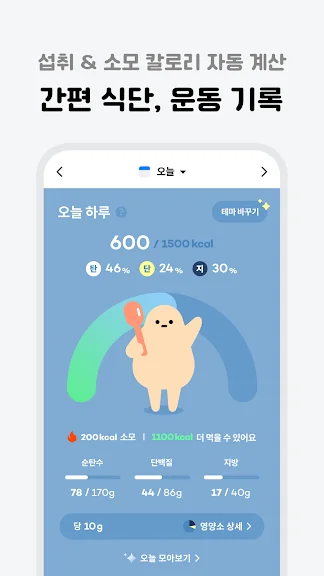 - 오늘 먹은 음식을 식단에 기록해 보세요. 칼로리와 탄단지 섭취량을 자동으로 계산해 드려요
