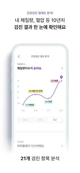 필라이즈에서 간편하게 10년치 건강 검진 기록을 불러오고, 건강 변화를 확인하고 기록하세요!