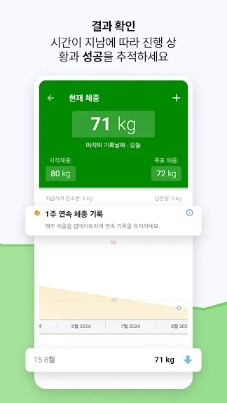 - 매일 몸무게를 기록해 보세요. 기록할 때마다 이전에 비해 얼마나 변화가 있었는지 한눈에 알 수 있어요