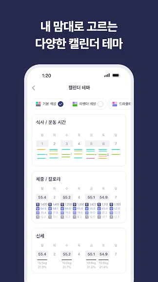 - 일반, 운동, 키토, 비건 등 자신에게 맞는 식단을 선택할 수 있어요