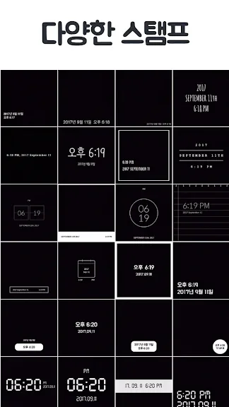 타임스탬프는 사진에 시간과 날짜를 간편하게 추가할 수 있는 혁신적인 카메라 어플리케이션입니다. 사용자는 직접 촬영할 수도 있고, 이미 저장된 사진에 손쉽게 타임스탬프를 추가할 수 있습니다. 다양한 스타일의 타임스탬프 모양 중 원하는 것을 선택하면, 멋진 시간 기록을 손쉽게 만들어낼 수 있습니다.