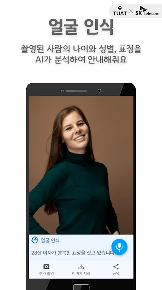 이 앱은 다양한 AI 기능을 갖추고 있습니다. 예를 들어, AI 모드를 통해 주변 환경의 물체나 장면을 자동으로 식별하고 설명하며, 문자 인식 모드를 통해 신문이나 우편물의 텍스트를 음성으로 안내하여 중요한 정보를 놓치지 않도록 합니다. 얼굴 인식 모드는 새로운 사람의 나이와 성별을 파악해 소개하며, 색상 인식 기능은 옷이나 물건의 색을 알려주어 외출 준비가 쉬워지도록 지원합니다.