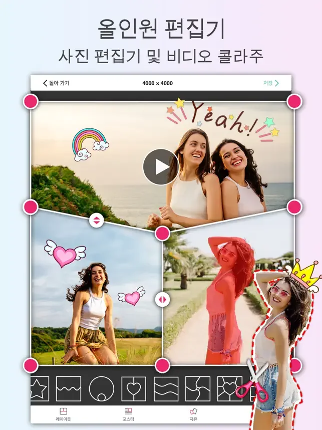어플 사용 방법은 간단합니다. 원하는 사진이나 비디오를 선택하고, 제공되는 템플릿이나 효과를 적용하여 자신만의 스타일로 편집하세요. 손쉬운 조작으로도 멋진 콜라주, 포스터, 커버 등을 제작할 수 있습니다. 특히 AI 크로마키 기능으로 배경을 손쉽게 제거하거나 교체할 수 있어 창작의 자유를 더합니다.