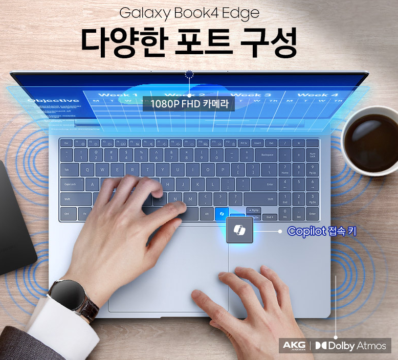 갤럭시 북4 엣지 키보드에는 새로운 전용 AI 키가 포함되어 있습니다. 이 버튼을 통해 Windows Copilot과 같은 AI 기능에 빠르게 접근할 수 있으며, 이를 통해 사용자는 더욱 스마트한 작업 방식을 경험할 수 있습니다.